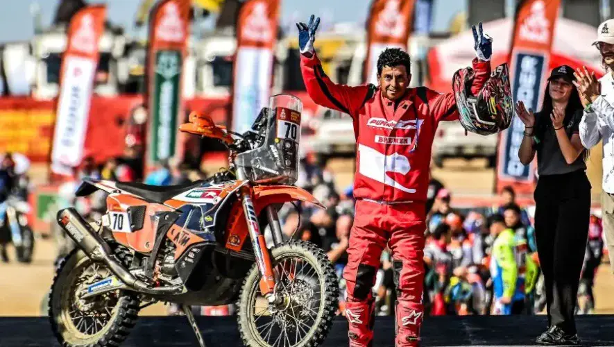 Con un tiempo de 17m 22s, el centroamericano llevó su KTM hacia la línea de meta, y luego pasó por el podio de largada simbólica, donde posó ante las cámaras de la transmisión internacional luciendo los colores de Puma Energy y Bremen, sus principales sponsors.