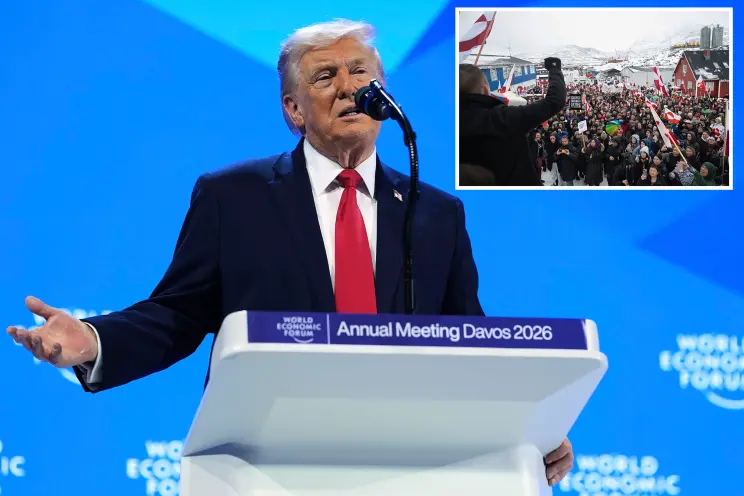 Trump spoke on topics including the economy, Greenland, the Russia-Ukraine War, NATO and Emmanuel Macron’s sunglasses.