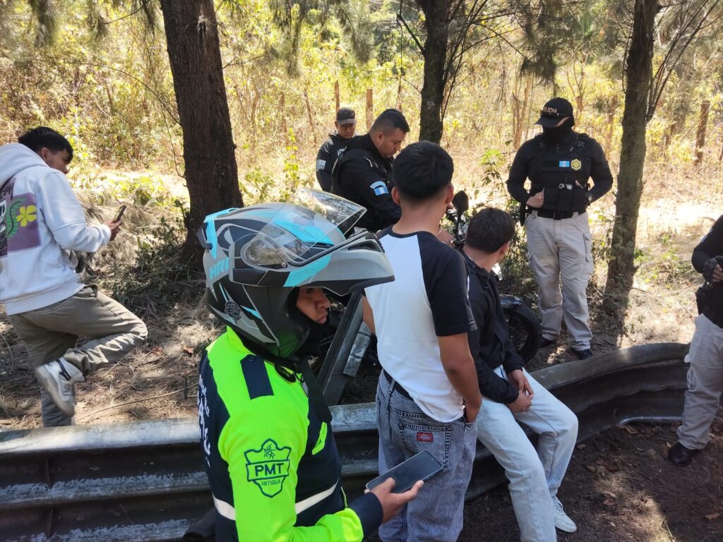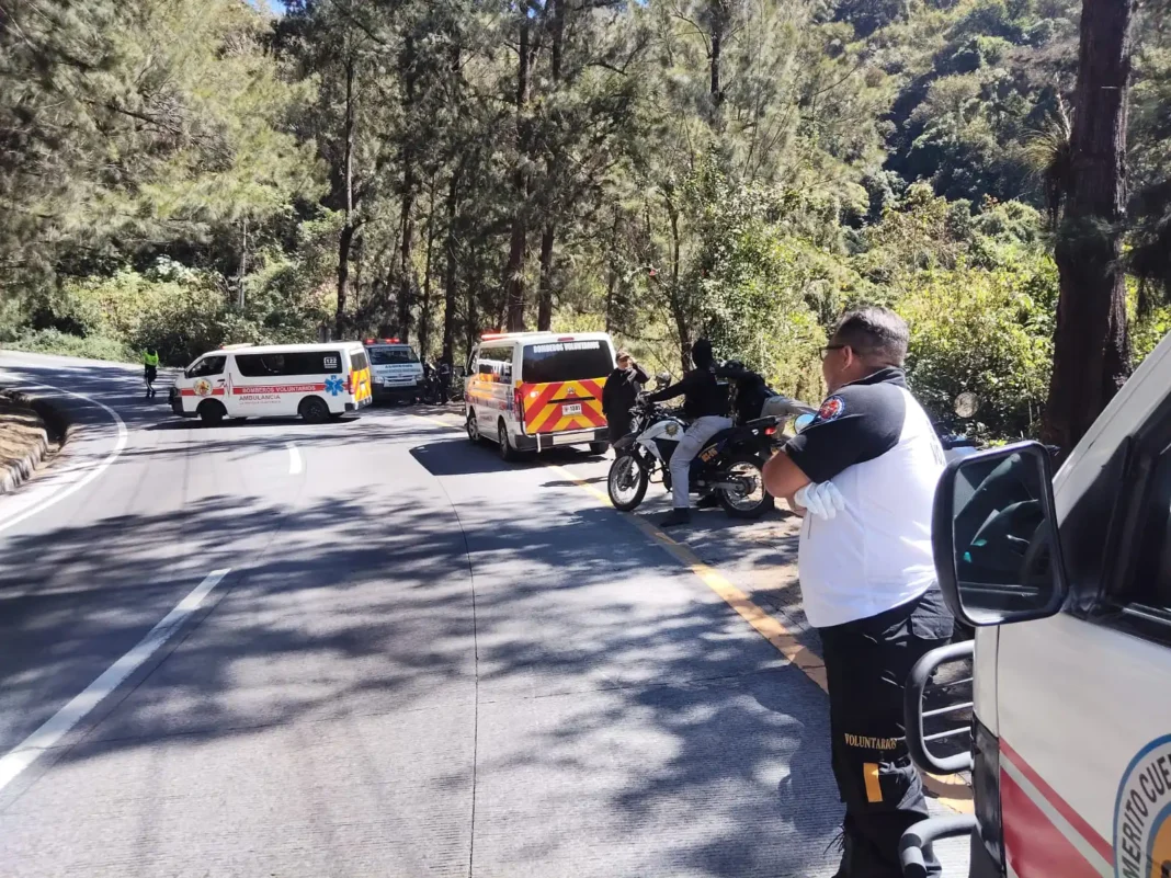 Se reporta un accidente múltiple que involucra a seis motoristas en la bajada de Las Cañas, sector conocido como la vuelta de Los Pinitos, en Antigua Guatemala.