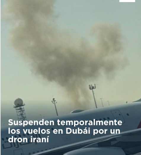 Un dron iraní impactó en las instalaciones del Aeropuerto Internacional de Dubái, lo que obligó a suspender temporalmente los vuelos. El ataque alcanzó un tanque de combustible, según informó la oficina de prensa del centro financiero del Golfo, aunque no se reportaron personas heridas. ✈️